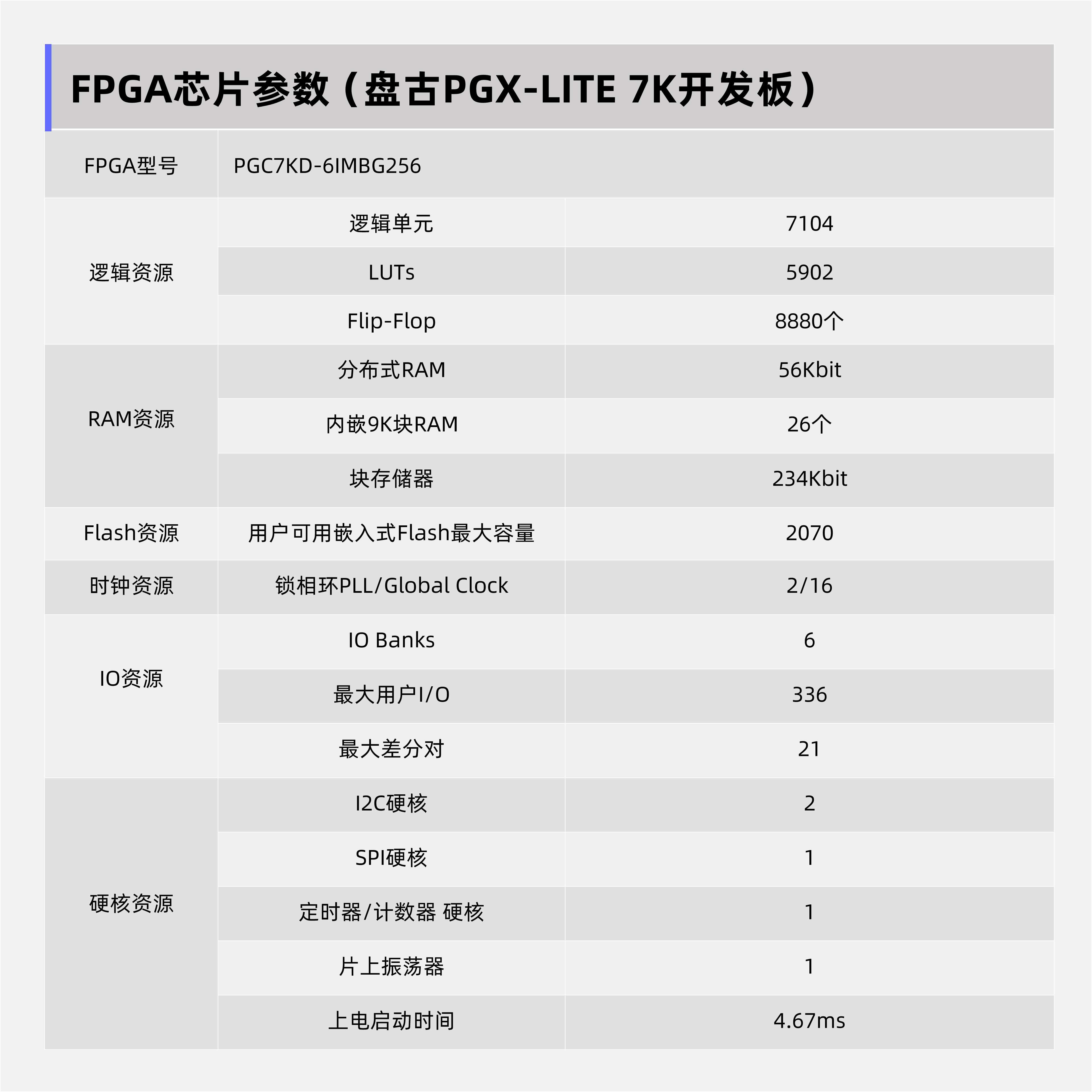 • 性能特点:具备7K逻辑单元规模,适合中等复杂度的逻辑设计和高性能计算需求。